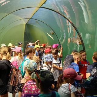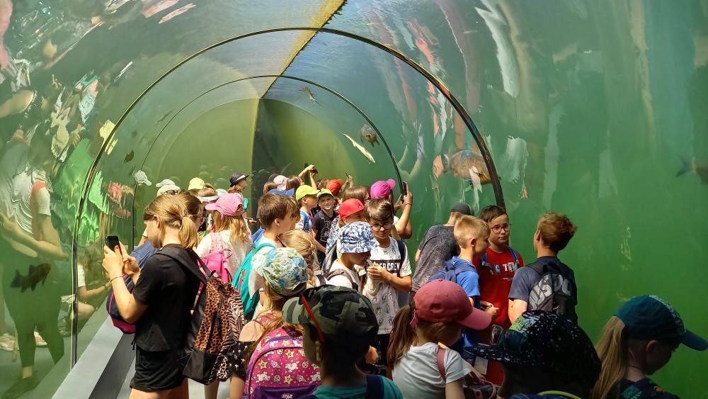 Na závěr výletu jsme navštívili přírodní areál Živá Voda, kde jsme si mohli v proskleném tunelu prohlédnout obrovské sladkovodní ryby, např. desetikilového kapra obecného, albína sumce velkého, několik druhů jeseterů a hlavně téměř čtyřmetrové jedince vyzy velké - největší sladkovodní ryby na světě. V areálu Živé vody jsme si mohli také smočit kotníky v rybníčku, což bylo v parném počasí velmi příjemné.