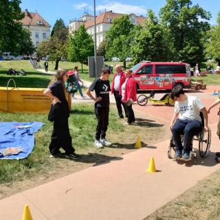 V úterý 13.5. se žáci třídy 7.C zúčastnili akce Roztoč to v Björnsenově sadu v Brně, kterou organizuje společnost ParaCentrum Fenix Brno a souvisí se zdravotním postižením a prevencí úrazů.