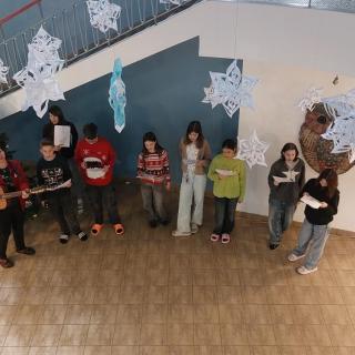 Vánoční zpívání ve vestibulu školy