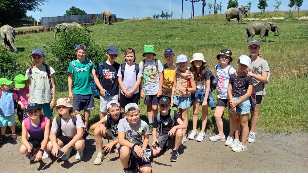 Ve středu 19. června se celý 4. ročník naší školy vydal na výlet do ZOO Lešná. Počasí nám více než přálo. V průběhu slunečného odpoledne jsme stihli zhlédnout spoustu exotických živočichů z nichž nás nejvíce nadchli sloni v nádherném volném výběhu. Teplota se šplhala ke 30 stupňům, a tak nebylo divu, že lvi a gepardi odpočívali ve stínu pod přístřeškem. Krásným závěrem byla možnost pohladit a nakrmit rejnoky. Velkou odměnou byl vynikající oběd v restauraci doplněný o točenou zmrzlinu a ledovou tříšť.