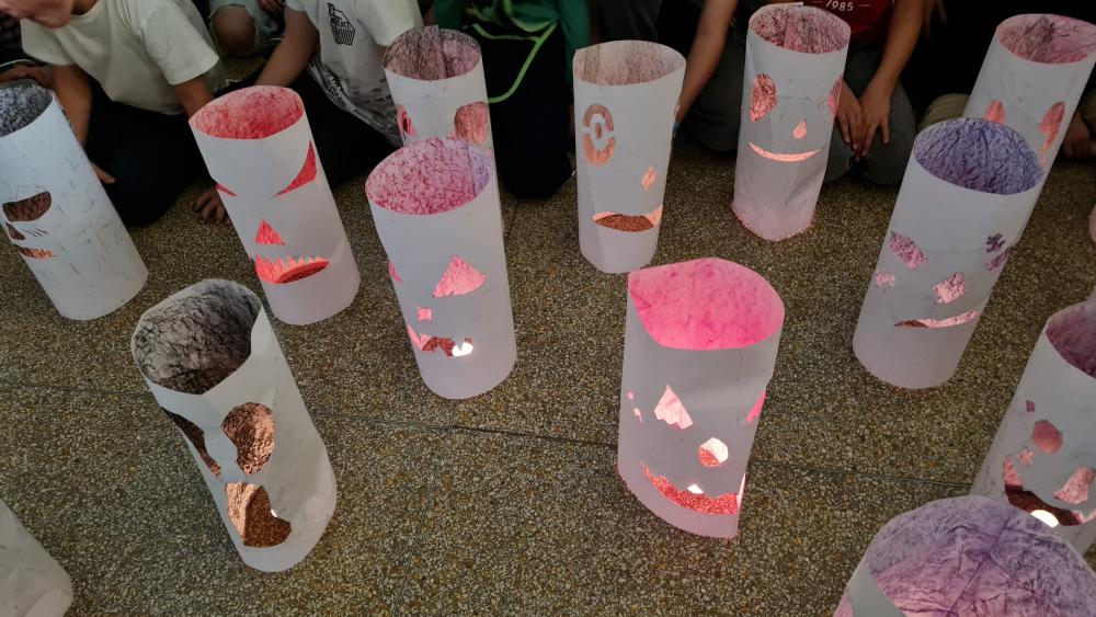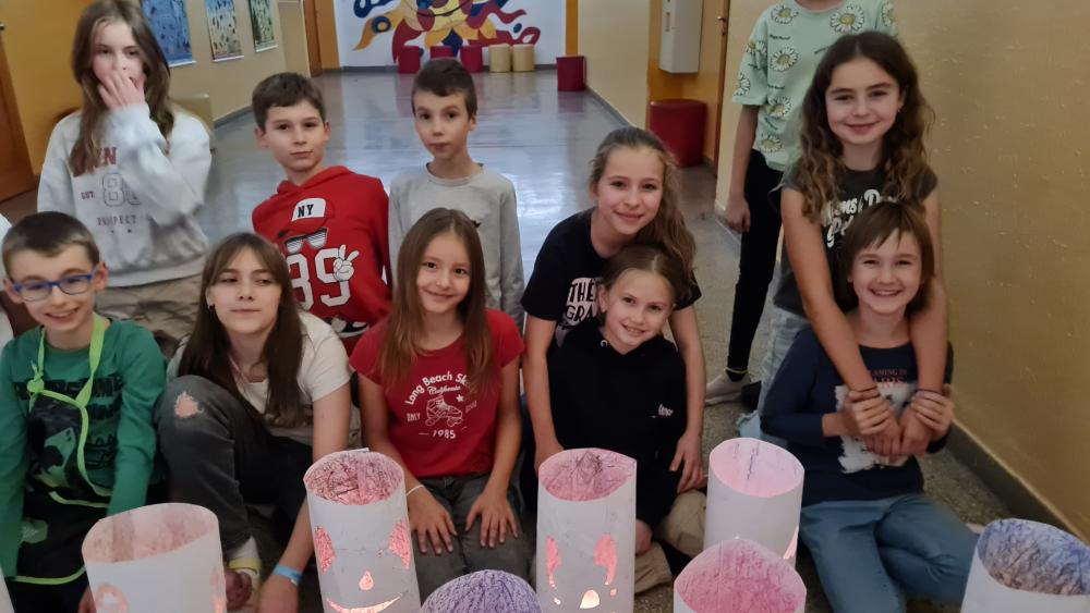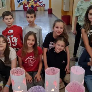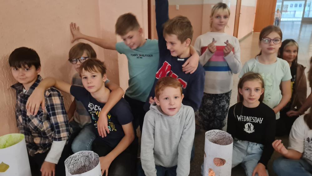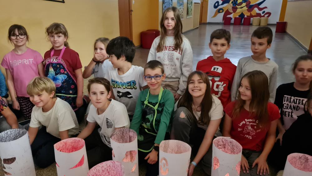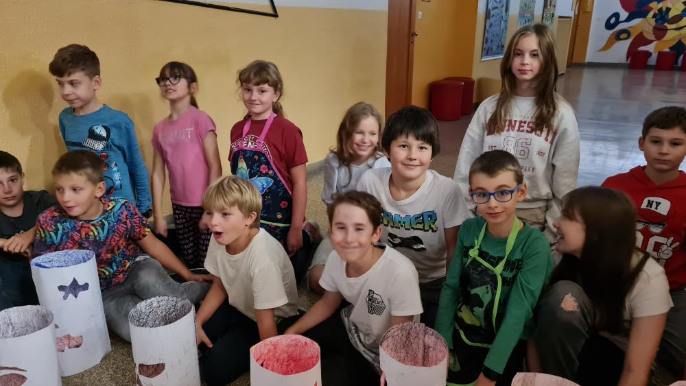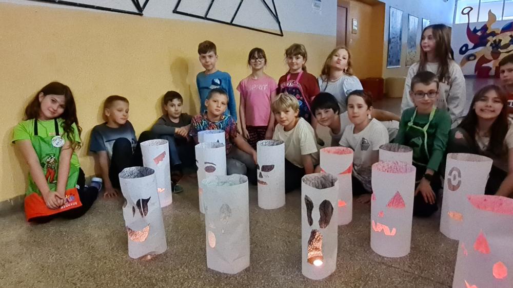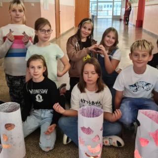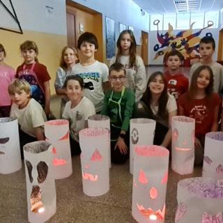 Minulý týden jsme se žáky pátých ročníků v rámci objektové tvorby zhotovili duchy. Jednoduchý papírový válec mohl být duchem hodným a usměvavým. Jiný duch mohl mít výraz zlý nebo nepříjemný. Do útrob každého ducha jsme vložili svíčky a už jsme se mohli trochu bát. Ale my se nebáli, protože duchové nejsou. Jen jsme se s nimi vyfotili.
