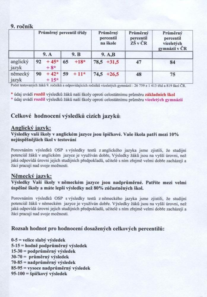 Porovnáním výsledků OSP s výsledky testů z anglického jazyka jsme zjistili, že studijní potenciál žáků v anglickém jazyce je využíván dobře, Výsledky žáků jsou na vyšší úrovni, než jaká odpovídá úrovni jejich studijních předpokladů, učitelé s ním zřejmě velmi dobře zacházejí a žáci pracují nad svoje možnosti.