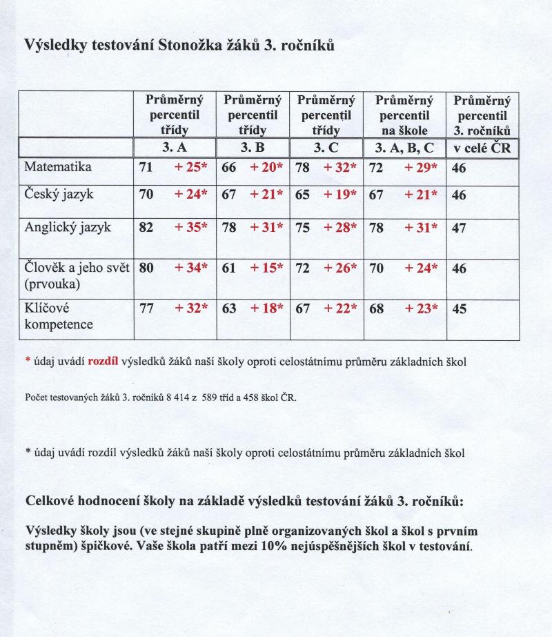 Výsledky testování "Stonožka" žáků 3. ročníků